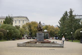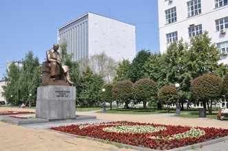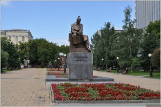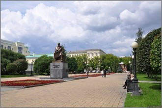 Хороший небольшой сквер. Красивые деревья и цветы.